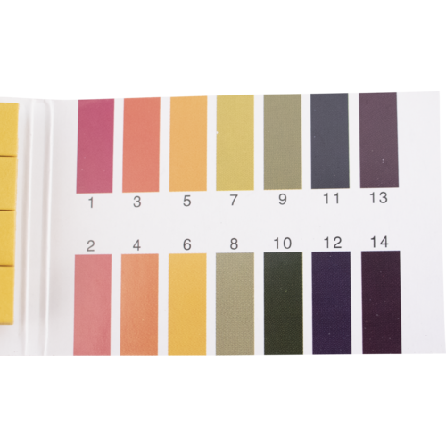 pH indicator strips in the range of 1-14 pH. Use these wide range strips for general determination of the pH, or to reduce the range before using a narrow range pH testing strip. A color reference chart is located inside the booklet. 80 test strips per booklet.